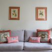In the living room, there is a comfy sofa, which transforms into a sofa-bed.